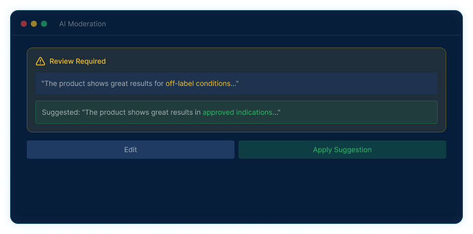 If risk is detected, users receive instant, compliant rewrite guidance.